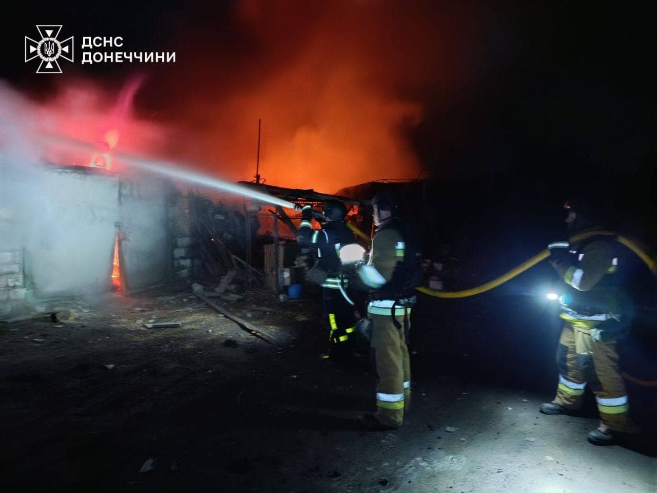 Уночі ворог завдав удару по Краматорську, внаслідок чого виникла пожежа на території підприємства. Надзвичайники ліквідували займання зруйнованих конструкцій на площі 30 кв. м.