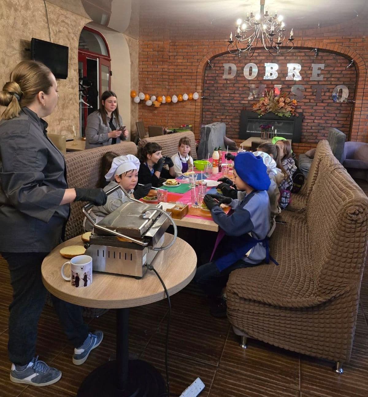 Так у Горішніх Плавнях відродилося DOBREMISTO. Концепція не змінилася — сімейне кафе, де раді бачити і дорослих, і дітей. Тут панує затишок, пахне кавою й десертами. Почали проводити перші майстер-класи — готували бургери й піцу, до Геловіну розмальовували пряники.