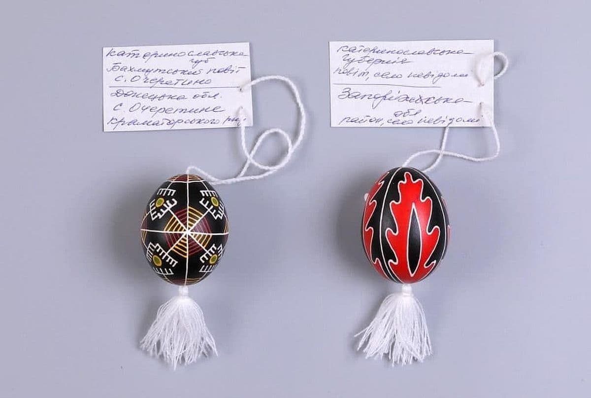 Ліворуч на фото — писанка Донеччини. Праворуч — Запоріжжя. Джерело: Музей Івана Гончара