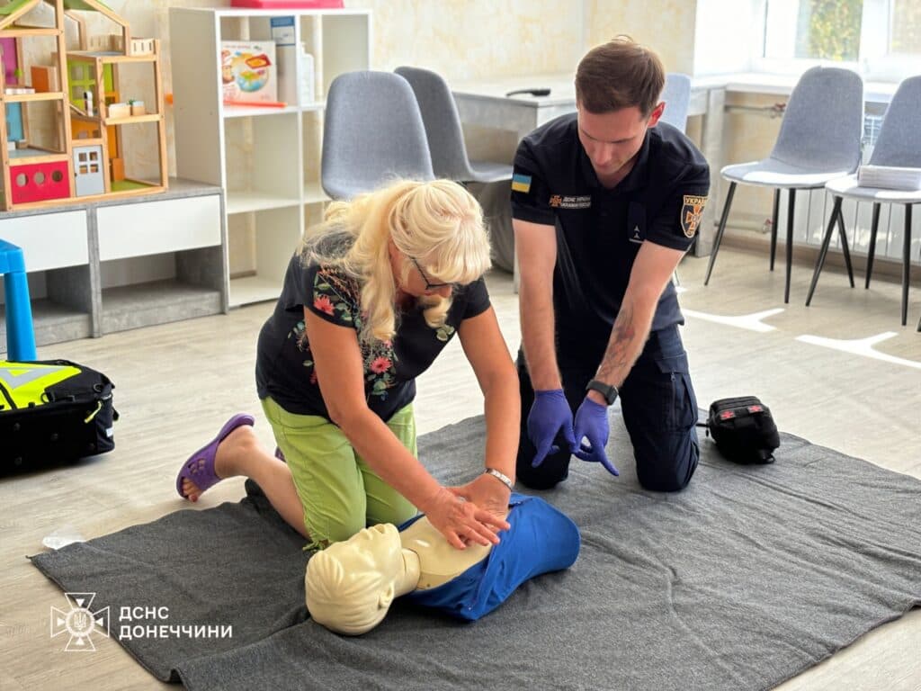 Для ВПО з Маріуполя рятувальники Донеччини провели навчання з пожежної безпеки та надання першої медичної допомоги