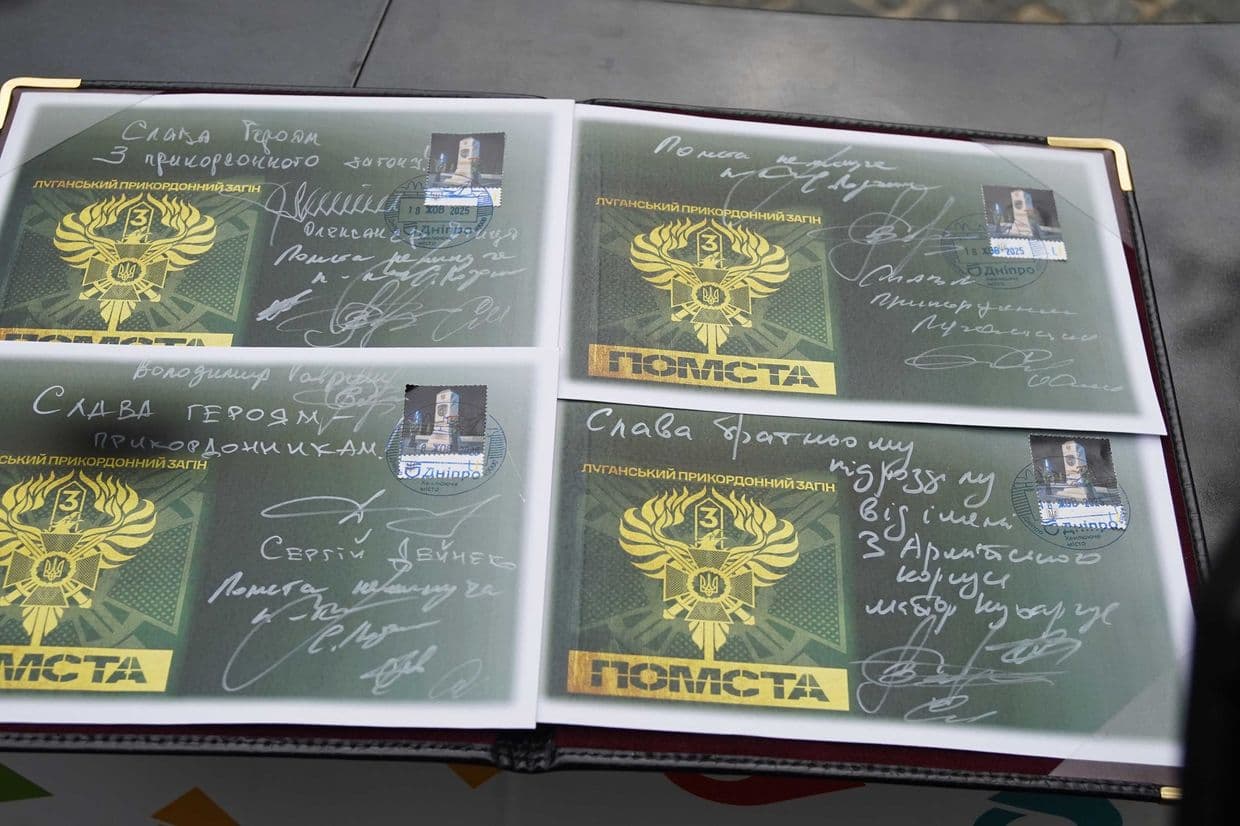 Спецпогашення відбулося на Алеї Захисників Луганщини у Дніпрі, де відкрили Меморіал загиблим прикордонникам 3-го прикордонного загону ім. Героя України полковника Євгенія Пікуса.