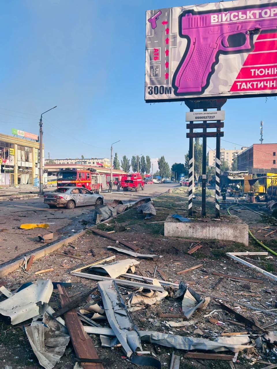За його словами, пошкоджено 54 торгові точки, 304 квартири у 13 будинках і 8 автомобілів.
