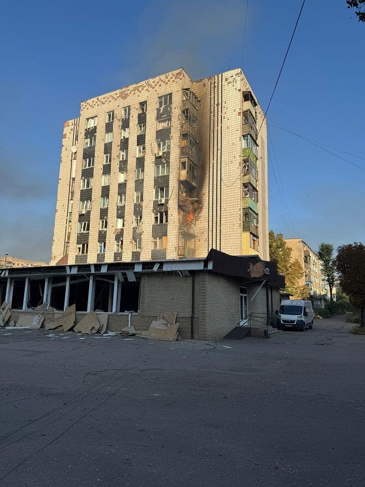 "Цього разу під удар потрапив будинок культури — пошкоджено його фасад. І майже одночасно FPV-дрон атакував фасад багатоквартирного будинку та фасади магазинів", — зауважив Горбунов.