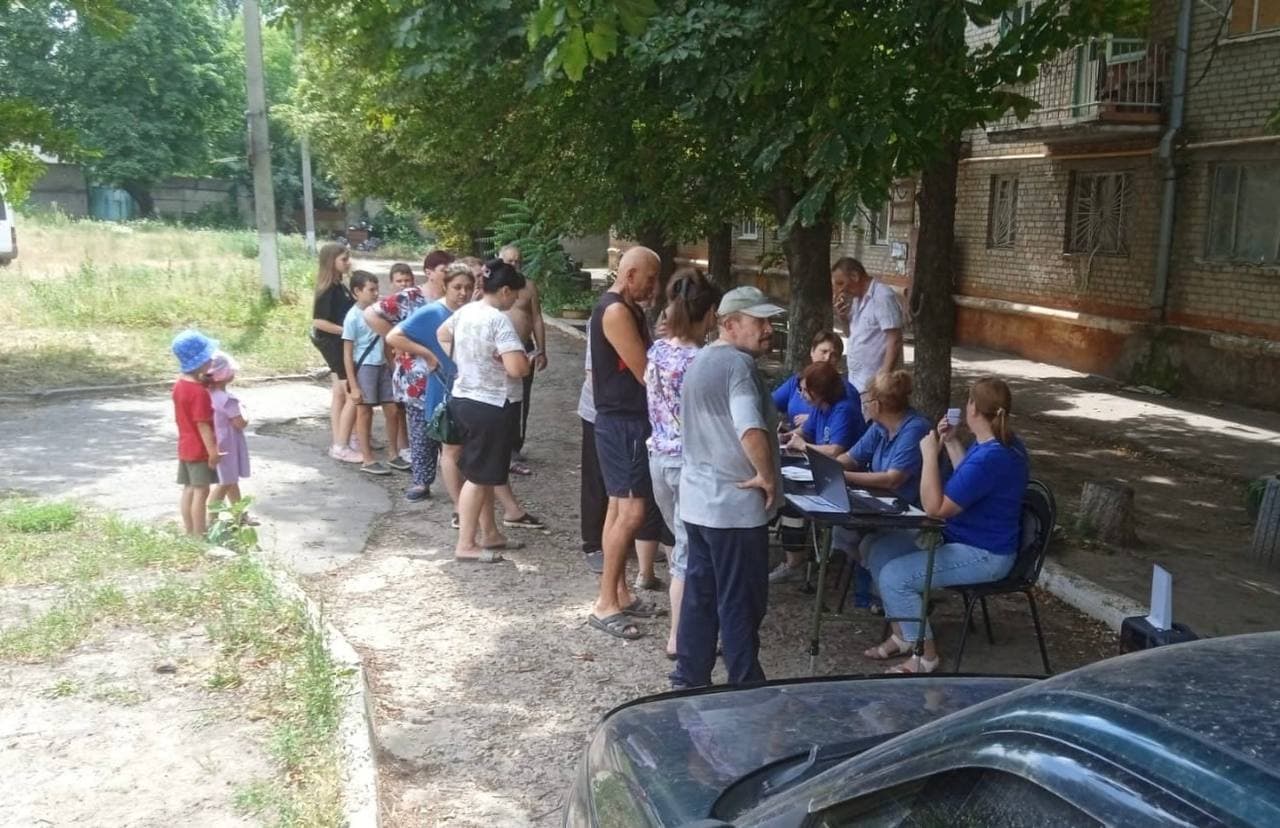 Видача благодійної допомоги. Фото: Краматорська міська рада