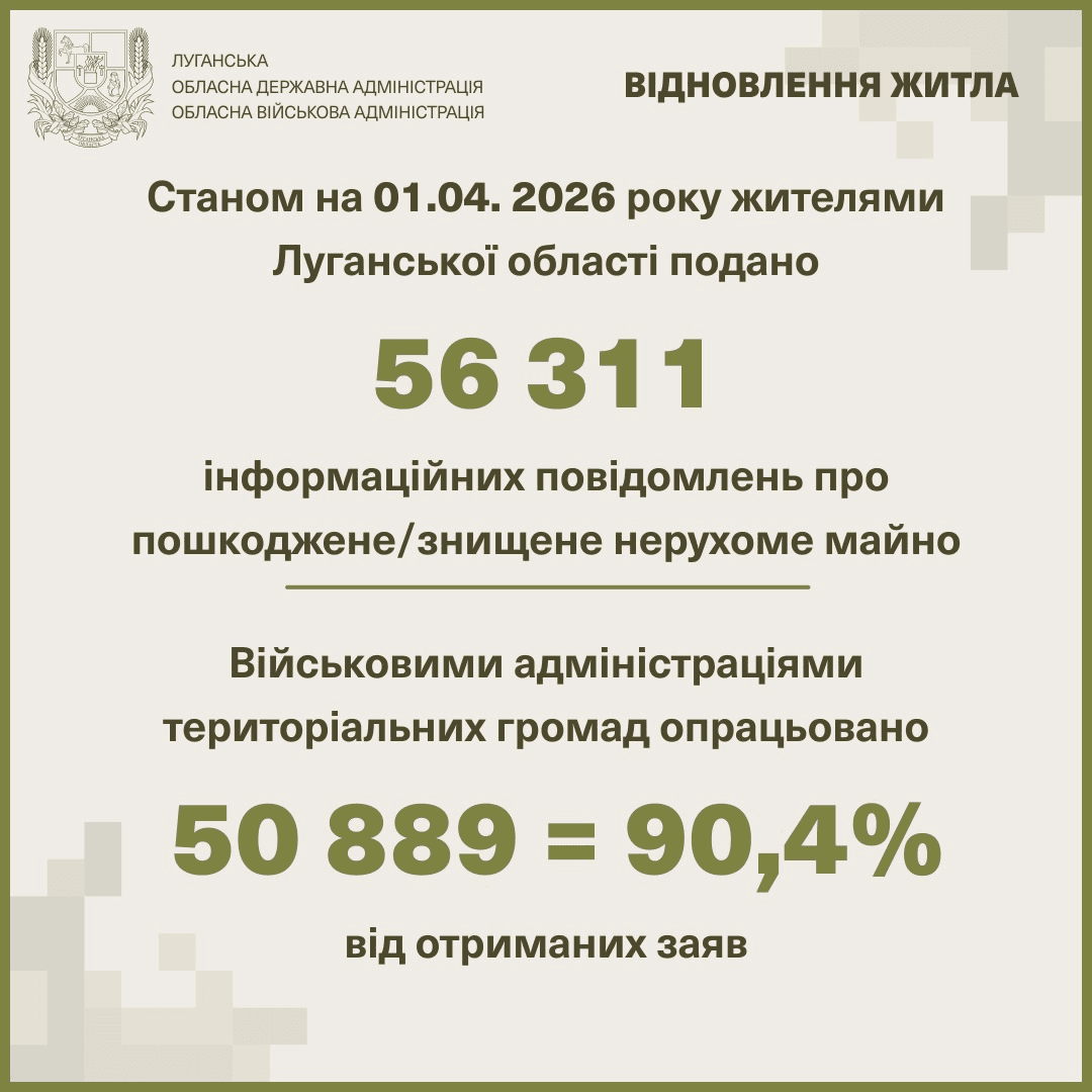 Наразі жителями Луганської області подано 56 311 відповідних інформаційних повідомлень. За останній місяць — 392.
