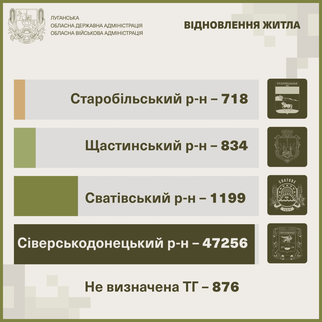 Найбільше — у Сіверськодонецькому районі. Так, в Сіверськодонецькій громаді оброблено 18 486 повідомлень, у Попаснянській 8 989, у Лисичанській — 7 790, у Рубіжанській — 7 316, у Гірській — 2 965, у Кремінській — 1 710.