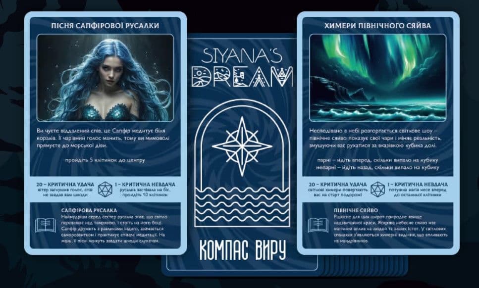 ️"Siyana’s Dream: Загублені в океані" це гра для 2-4 учасників віком від 14 років. Тут прості правила, динамічний геймплей і багато сюжетних варіацій з авторським фентезі-світом.