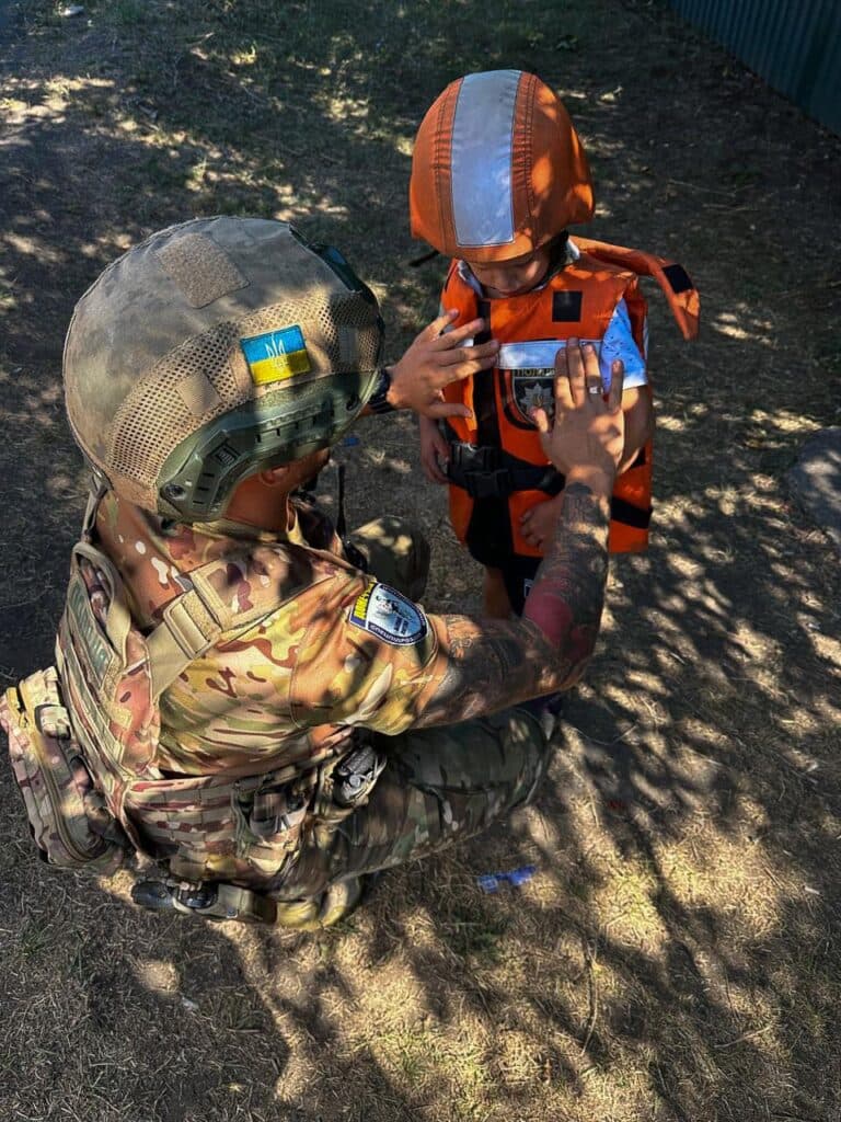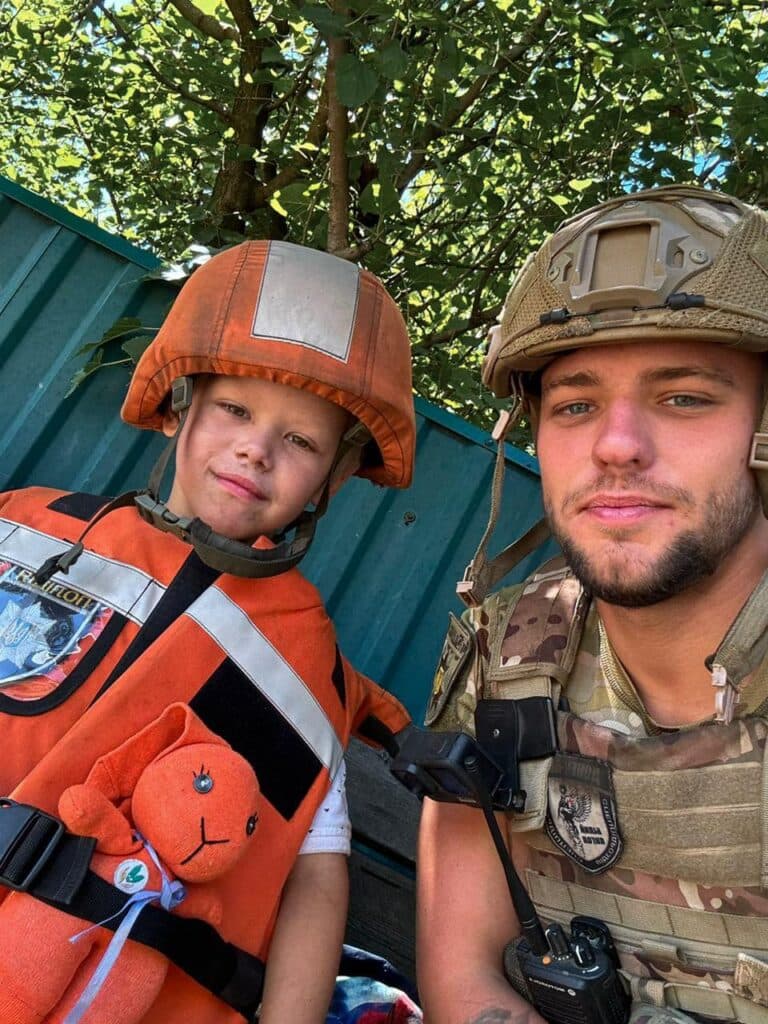 "На цих зворушливих фото — пʼятирічний Руслан та півторарічний Ярік з села Новоекономічне, що на Донеччині. Їх разом з мамою евакуювали за кілька кілометрів від лінії фронту поліцейські спецекіпажу “Білий янгол“. Евакуація пройшла в умовах високого ризику, адже ворожа армія постійно обстрілювала сусідні села авіабомбами. Попри це, поліцейські змогли забезпечити безпеку дітей та їхньої матері", — йдеться у дописі.