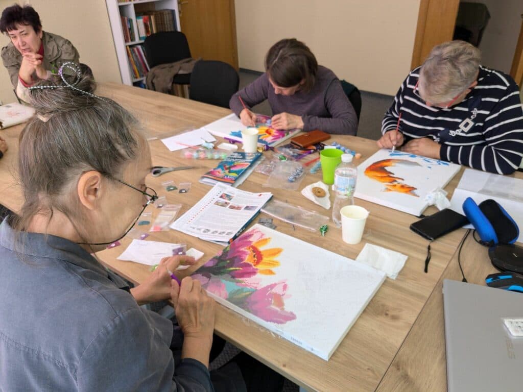 "На цих заняттях учасниці малюють картини за номерами, створюють вишукані образи з бісеру, збирають пазли, тощо. Такі творчі практики допомагають зняти стрес, зосередитися на позитивних моментах і надають можливість відволіктися від повсякденних турбот, створюючи затишну атмосферу підтримки й самовираження", — йдеться у повідомленні.