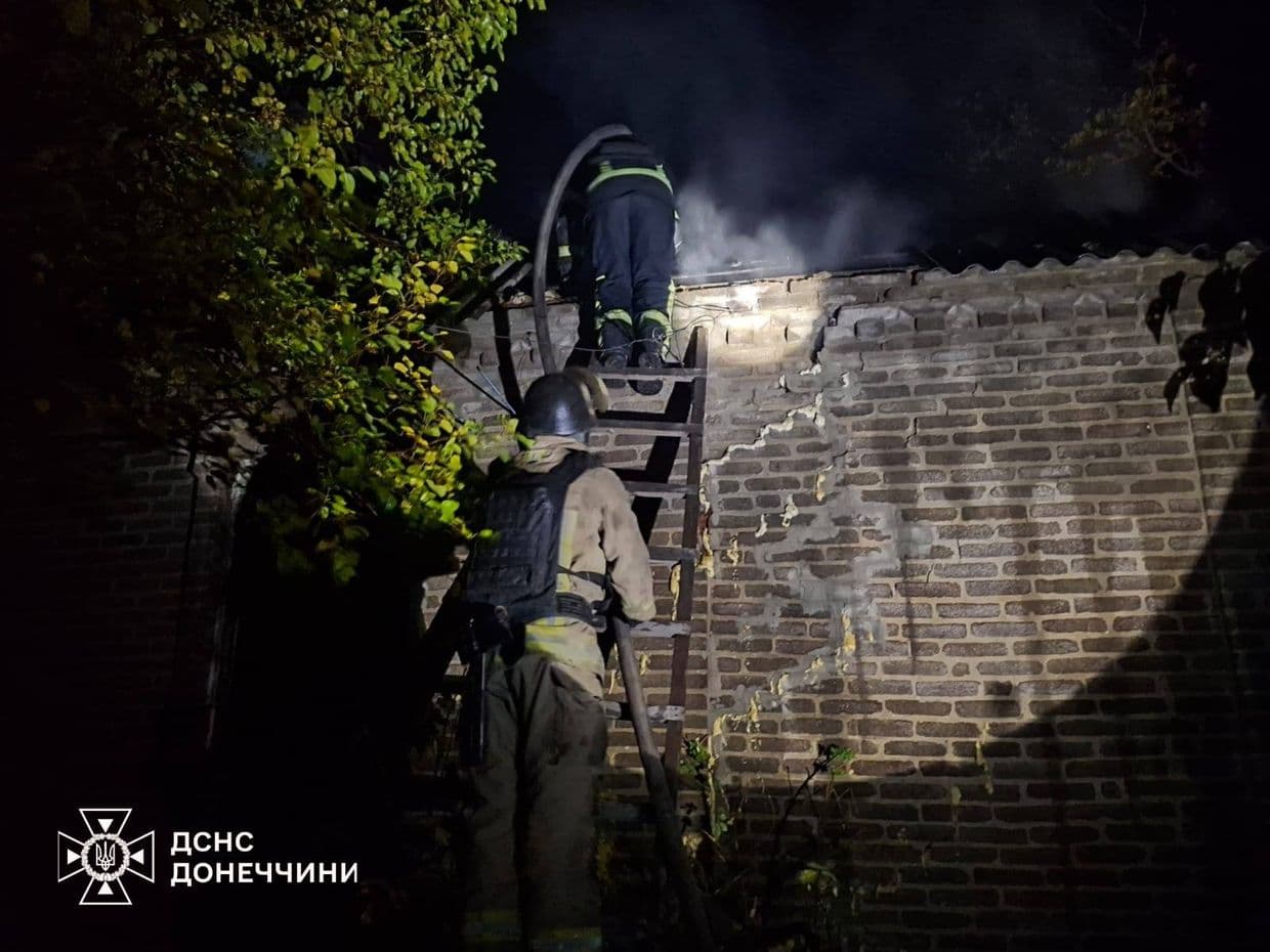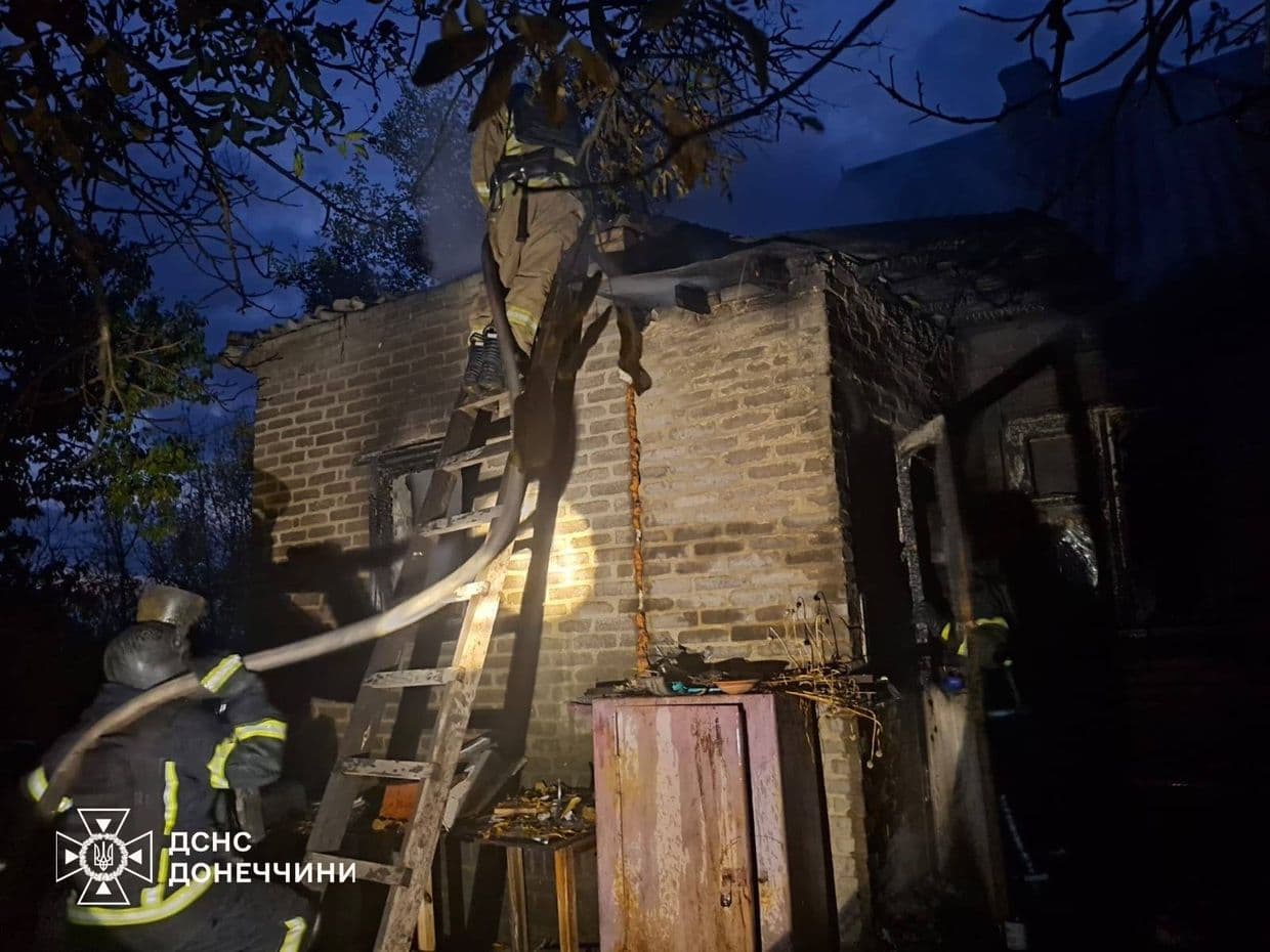Горить приватний житловий будинок, жовтнеь 2025 року. Фото: ДСНС Донеччини