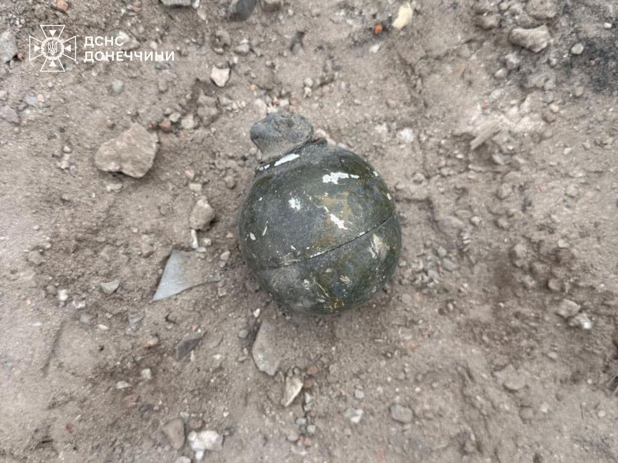 Вибухонебезпечний предмет, знайдений на Донеччині 24 березня 2026 року. Фото: ДСНС Донеччини