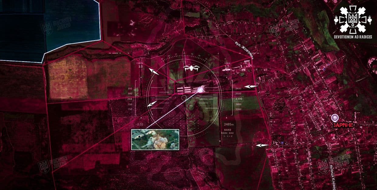 "Лиманський напрямок: На відрізку західніше Зарічного, наші підрозділи відпрацювали нестандартно і жорстко!За допомогою НРК вдалося зайти прямо в тилові точки противника на території ферм, фактично заїхали їм у кишеню без попередження. Далі відбулася чітка ліквідація: забудову разом із живою силою ворога рознесли вщент. Удар вийшов потужний, із серйозними наслідками для окупантів, по такому прильоту "відновлюватися" їм доведеться довго, якщо взагалі буде кому", — повідомляє