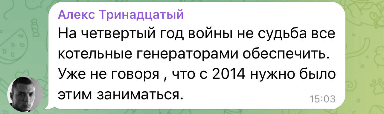 "На даний момент через низьку напругу в мережі частина з них поки не дають тепло. Роботи по запуску подачі теплоносія тривають. Поручив приділити особливу увагу котельням, які забезпечують теплом соцоб'єкти і великі житлові масиви", — відрапортував ватажок.