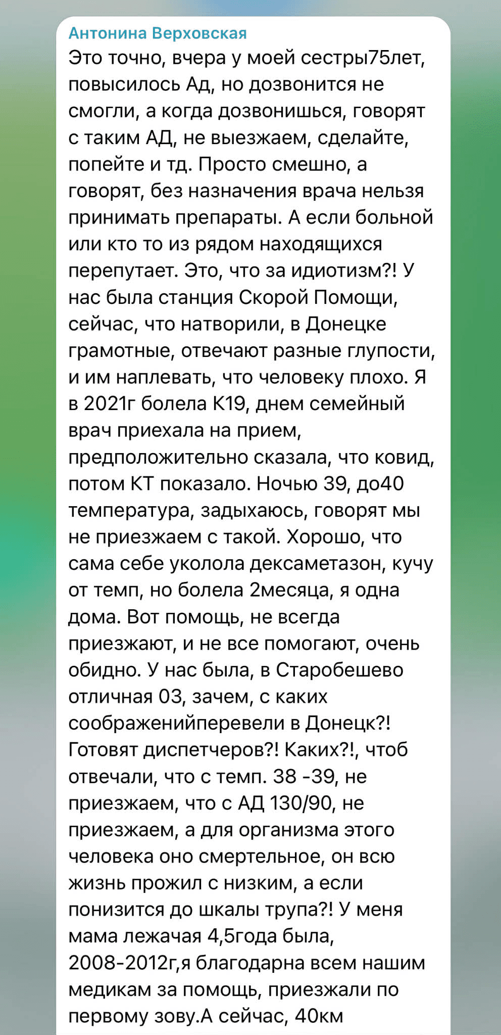 В коментарях до новини в Телеграм зазначили, що з медициною на окупованій частині Донеччини — повний безлад і "швидку допомогу" викликати складно і приїжджає вона далеко не на всі виклики.