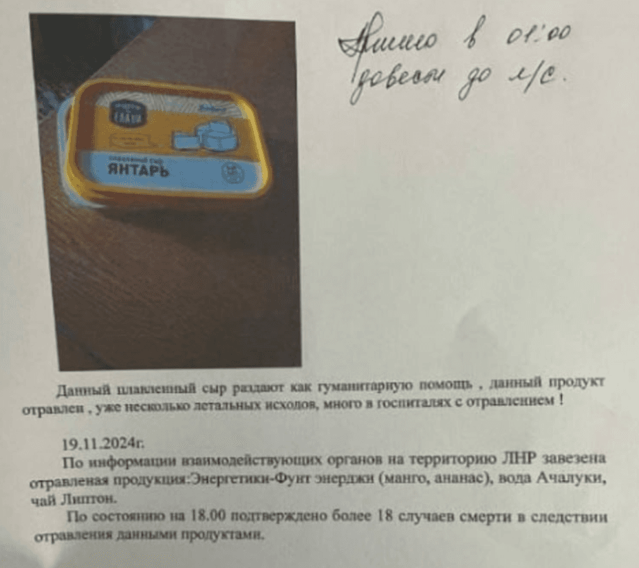 На окупованій Луганщині у «відомчих» чатах повідомляють про отруєні продукти, які були завезені в на окуповану Луганщину.