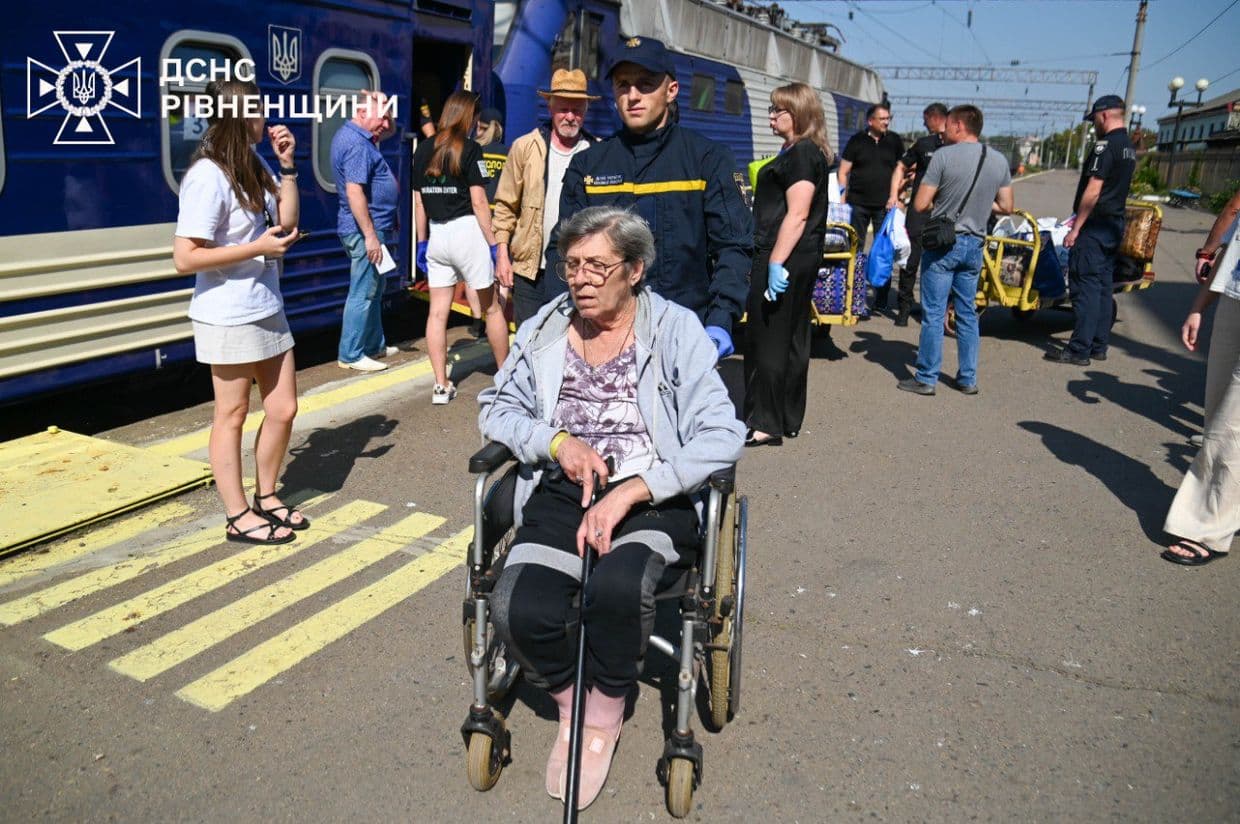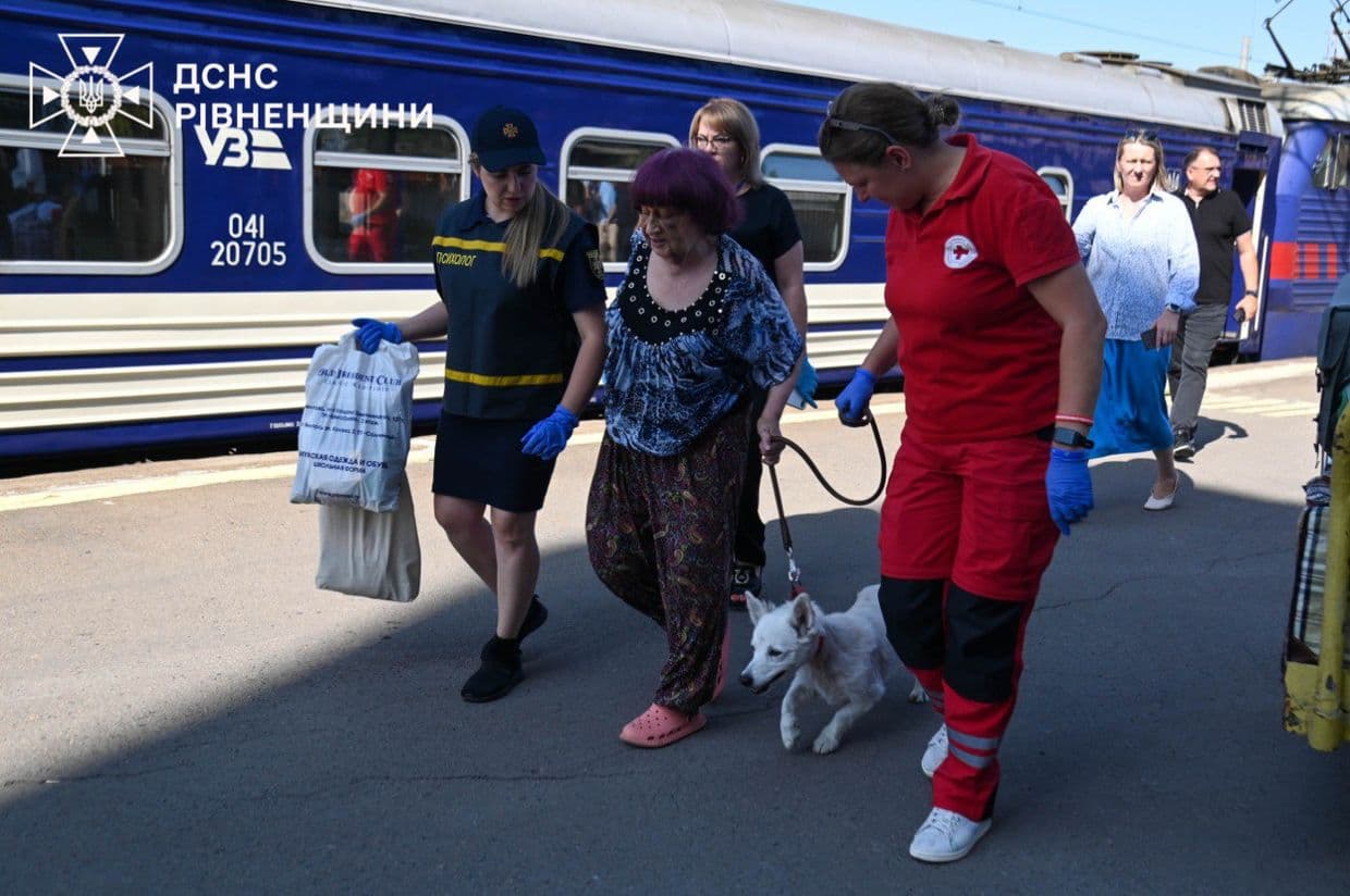 15 людей, переважно похилого віку, та 4 домашніх улюбленців, приїхали евакуаційним потягом з Донеччини на Рівненщину — це 10-й цього року потяг з громадянами, що залишають свої домівки.