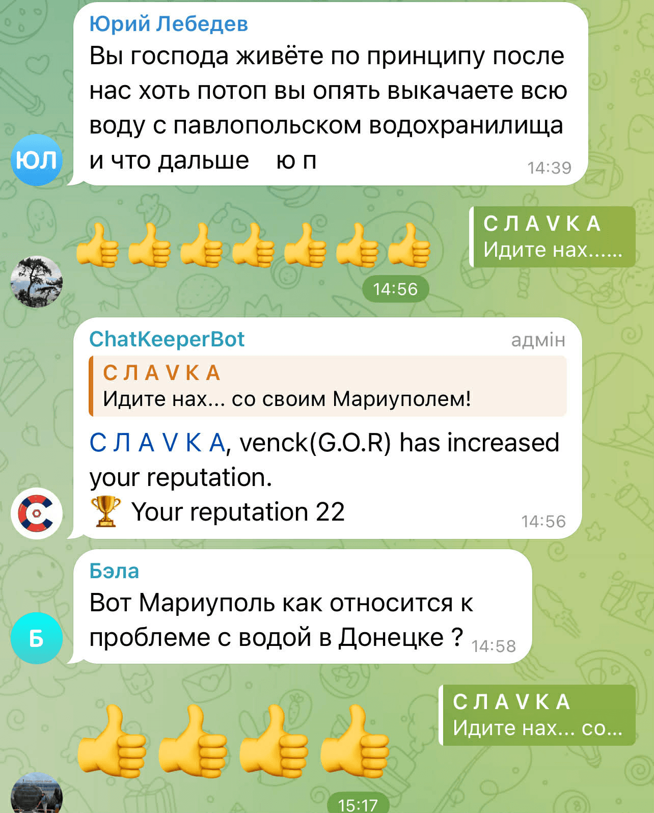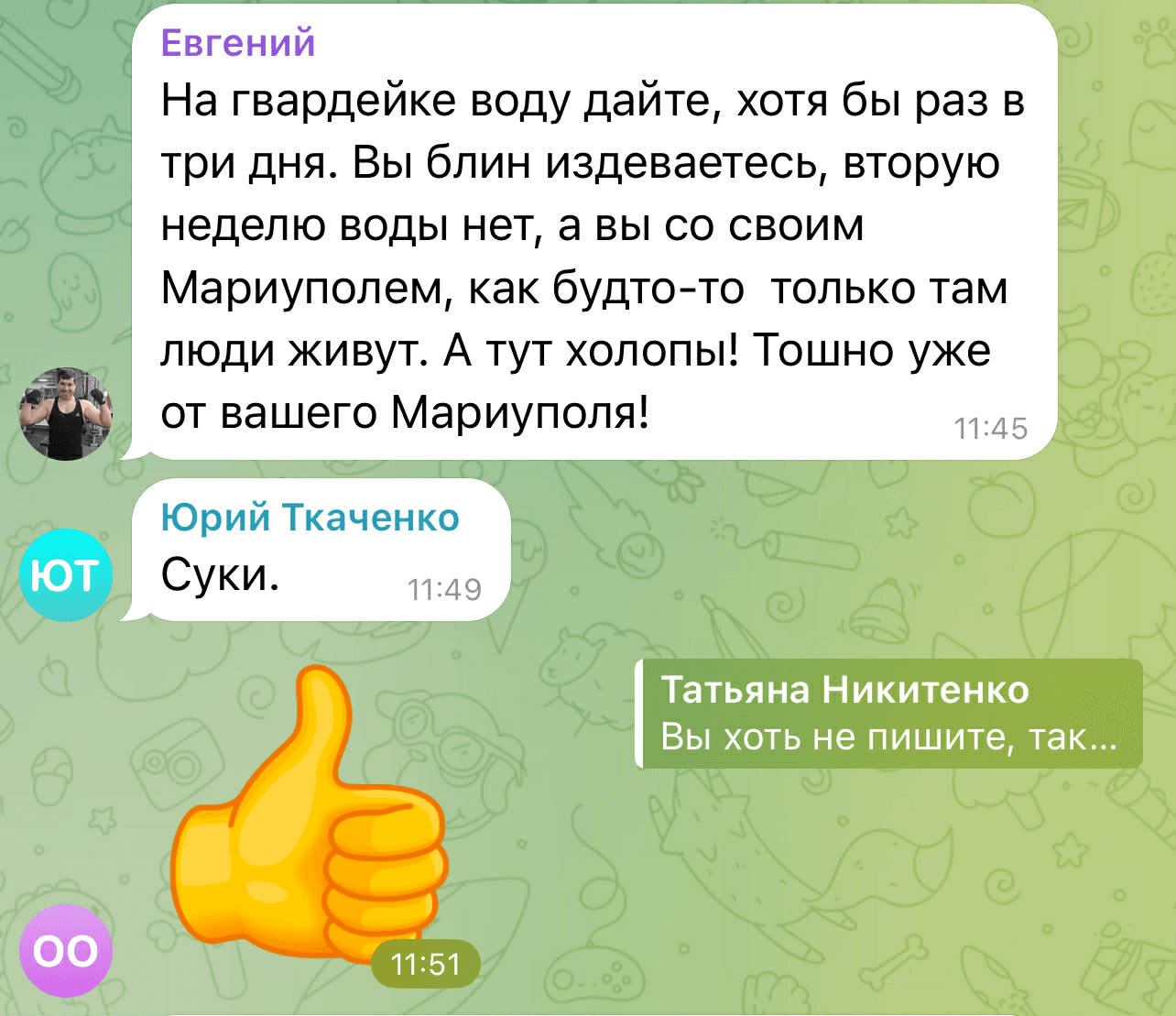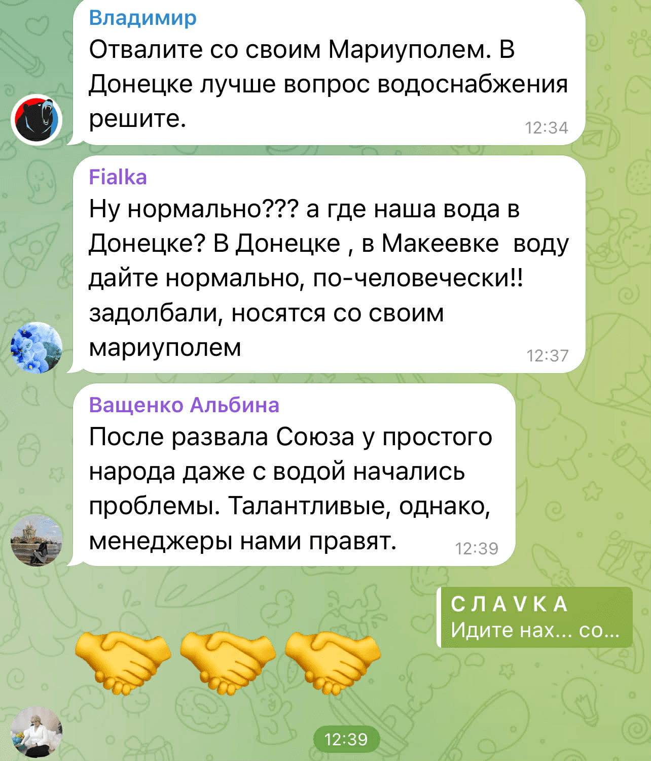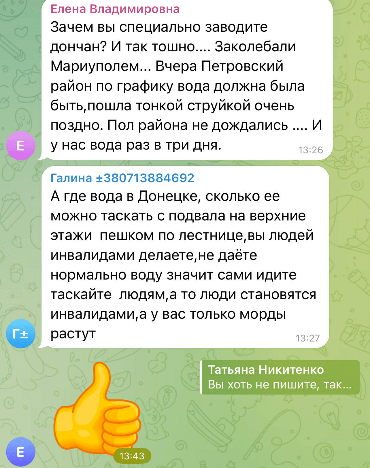У коментарях у Telegram ця новина викликала негативну реакцію. Люди почали сперечатися між собою, де на ТОТ проблема з водопостачанням є більш глобальною, і скаржилися на відсутність води в окупованих районах Донецька та в Макіївці.
