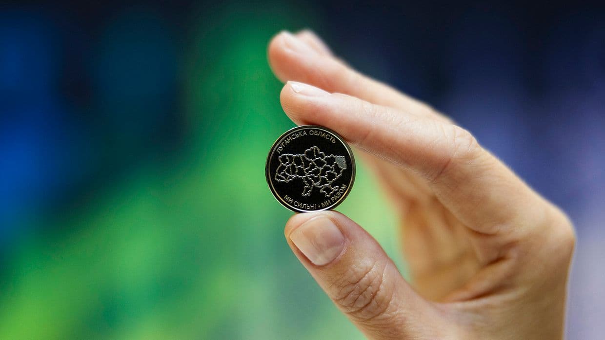 - на монеті “Ми сильні. Ми разом. Луганська область” — Луганську область.