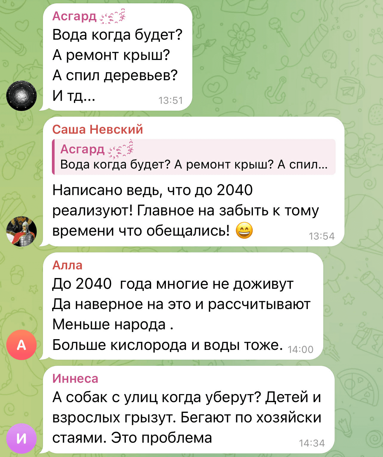 В Телеграм на цю новину відреагували негативно. Користувачі зазначили, що на ТОТ Донеччини є багато інших проблем, перерахували їх, та запитали, коли буде їх вирішення.