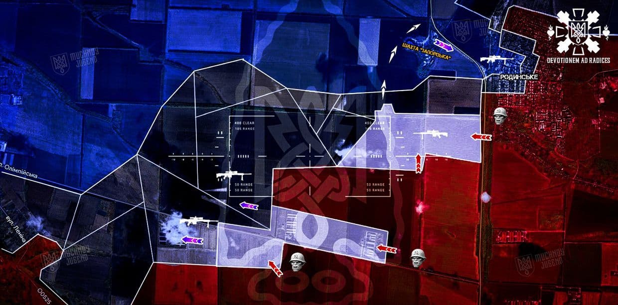 Окремо варто звернути увагу на загрозу з "сірої" зони південніше шахти. Є ризик, що ворог спробує діяти дрібними піхотними групами, обходячи флангами, без техніки, під прикриттям рельєфу.