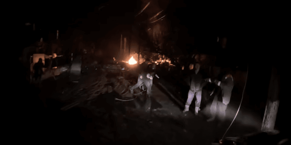 Ніч. Снаряд влучив у багатоповерхівку. Парамедики вже тут: оглядають жінку, на яку впали уламки, та доправляють всіх постраждалих у медзаклад.