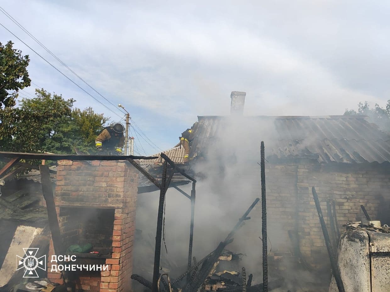 Гасіння пожежі у Слов'янську 8 жовтня 2025 року. Фото: ДСНС Донеччини