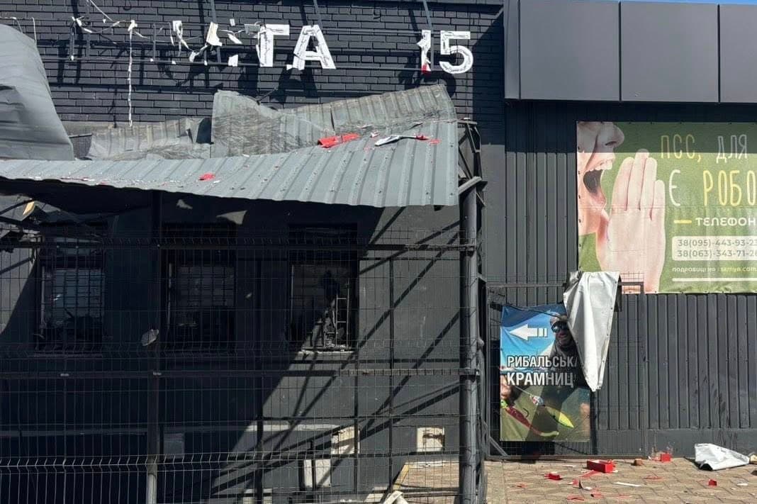 Пошкоджене російським БпЛА V2U відділення "Нової пошти" у Краматорську, 29 серпня 2025 року. Фото: Facebook/Олександр Гончаренко