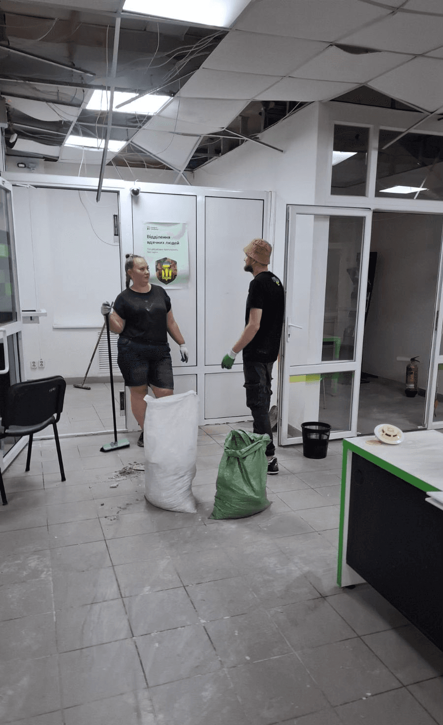 "Реальність у якій наші фахівці до останнього віддано виконували свою роботу. Наші відділення у Дружківці від початку повномасштабного вторгнення не припиняли роботу ні на день. Навіть тоді, коли у місті 15 днів не було світла, команди Вікторії Матвєюк та Тетяни Жарко продовжували роботу. Попри те, що у відділенні, яке пережило приліт, не було опалення, світла і води. Зате було бажання бути поряд з клієнтам, коли місто стало найближчим надійним тилом для тисяч військових і мешканців Дружківки та прилеглих сіл".