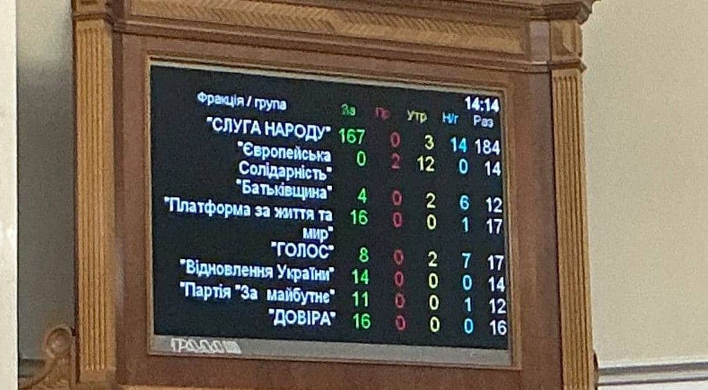"За" проголосували 248 депутатів, проти — 2, утримались — 20, не голосували — 33.