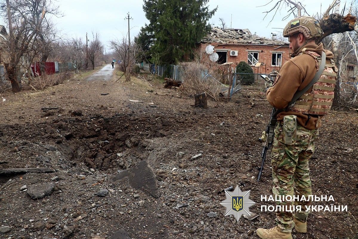 Трохи далі на цій вулиці правоохоронців чекає літня жінка. Зранку неподалік її будинка вибухнув снаряд, утворивши величезну вирву.