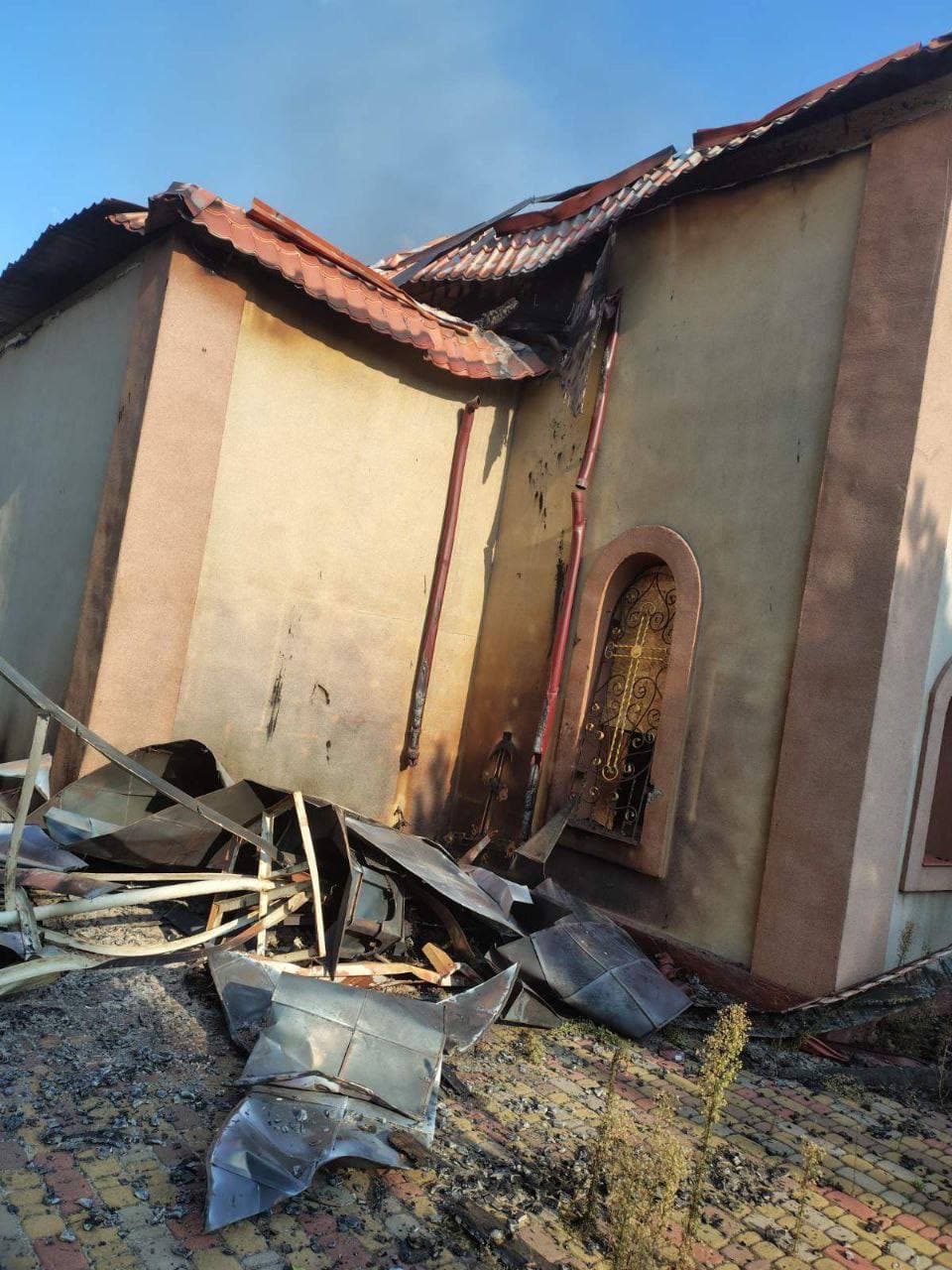 На світлинах видно пошкоджений дах релігійної споруди зі слідами пожежі.
