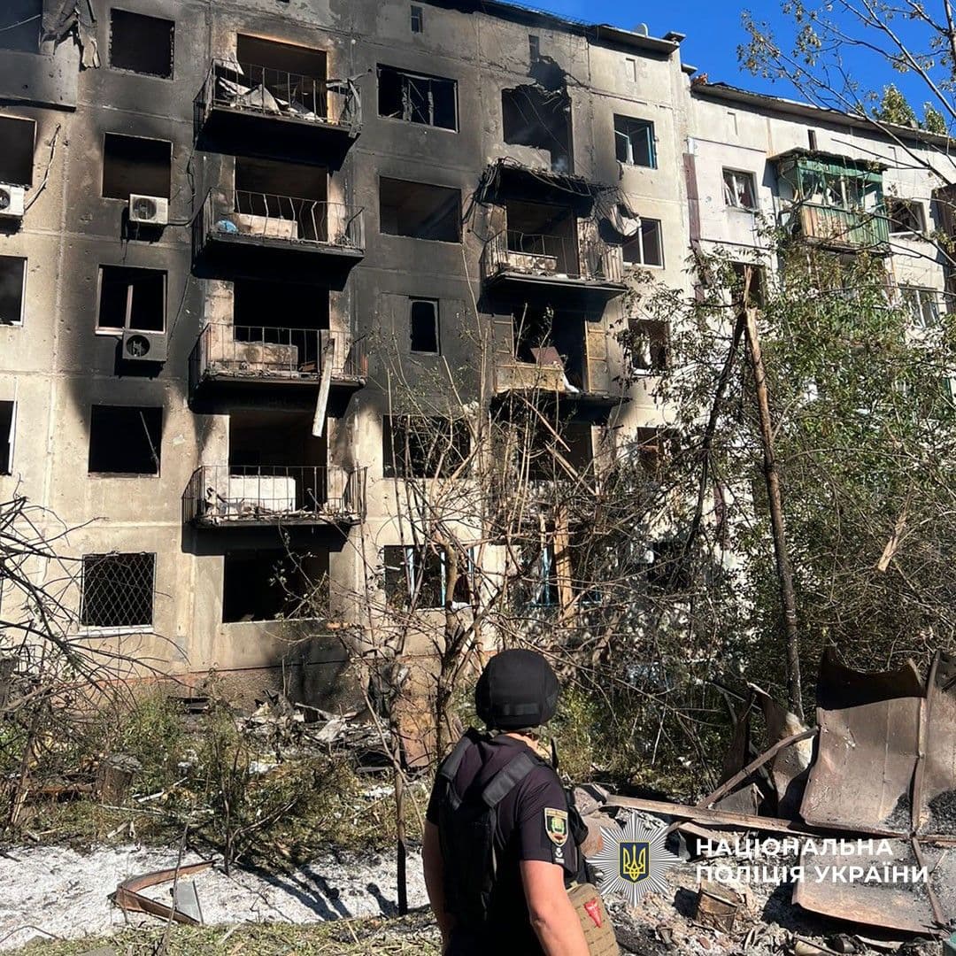 По Константиновке россияне ударили 8 КАБами, а также дронами, РСЗО "Смерч" и артиллерией — убили гражданского человека, еще одного ранили. Были повреждены 6 многоквартирных и 20 частных домов, админздание, учебное заведение, цех, 8 гаражей, автомобили.