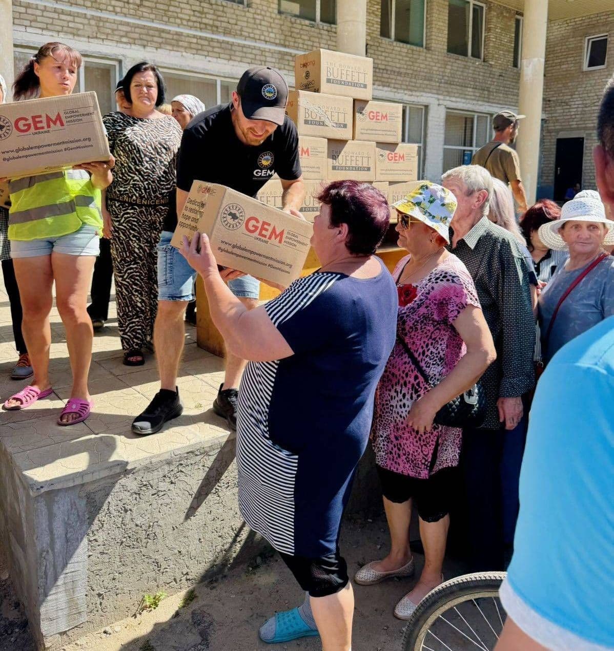 Жители громады получают гуманитарную помощь. Фото: Черкасская поселковая военная администрация