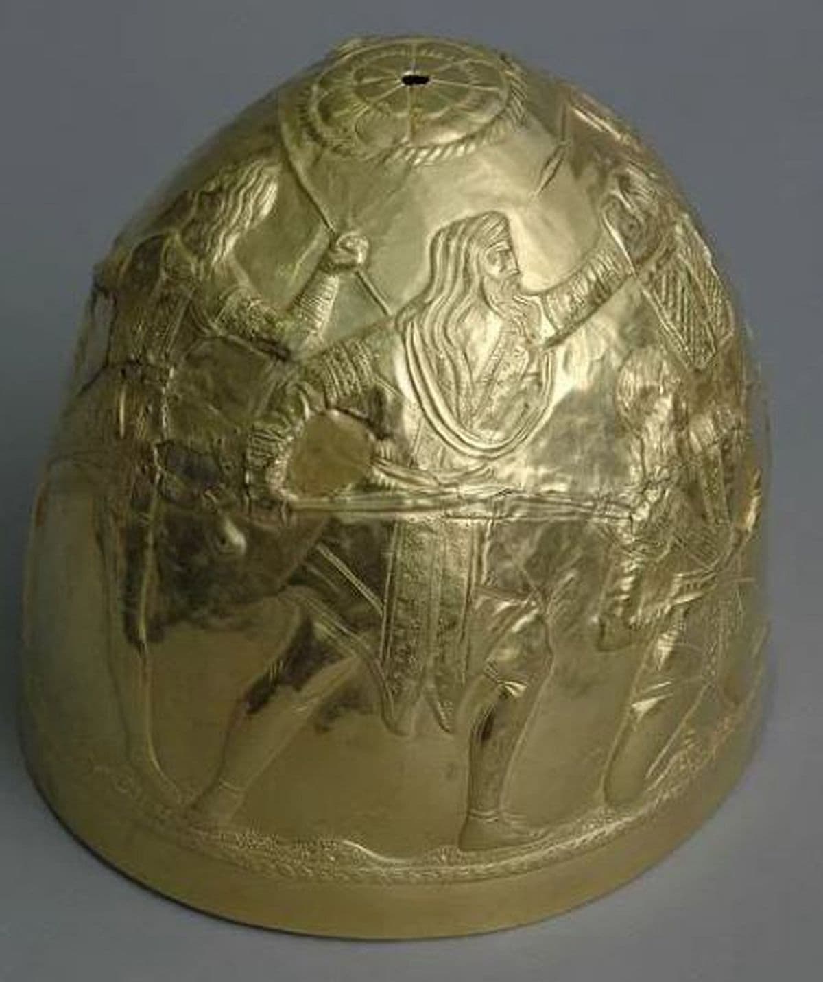 Скифский золотой шлем IV в. до н.э., который нашли во время раскопок в 1988 году. Фото: Донецкий областной краеведческий музей