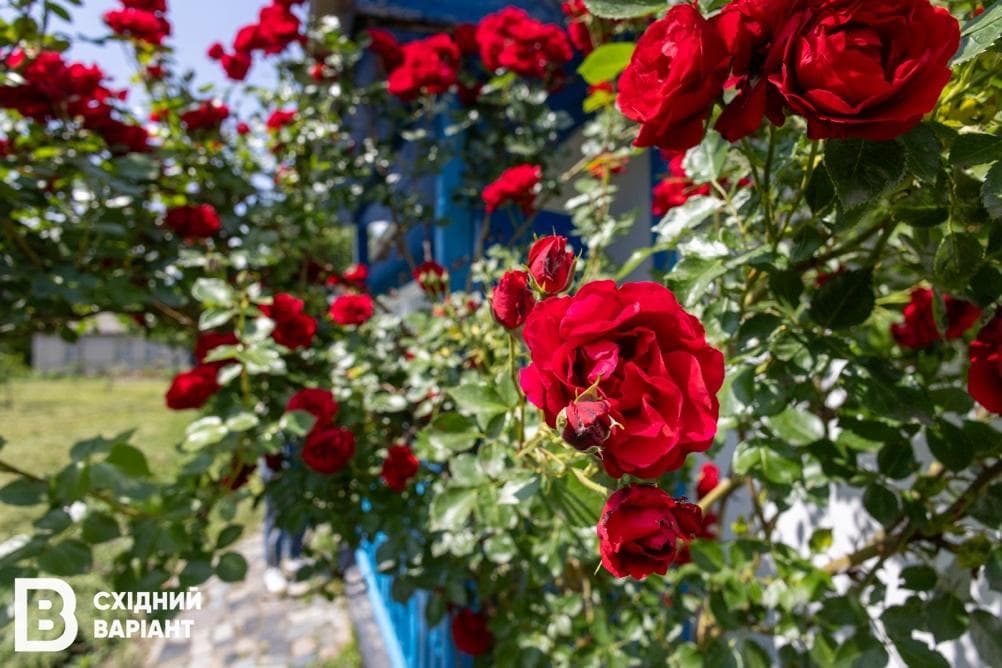 Веранда донецкой хаты встречает кустом красных роз — еще один символ региона. Ведь в 1970 году ЮНЕСКО признало Донецк самым озелененным высокоиндустриальным городом мира, тогда его прозвали “город миллиона роз”. Преданность цветам с шипами прослеживается и у предков Донетчины, ведь именно розу они изображали на вышитых сорочках региона.