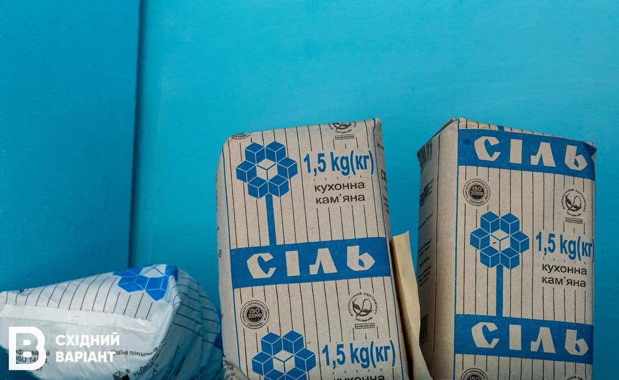 Стол, на котором лежит флаг, оказывается выставочным стеллажом. В нем размещены главные символы Донецкой области: соль из Соледара, уголь из недр донецкой земли, глина и колос.