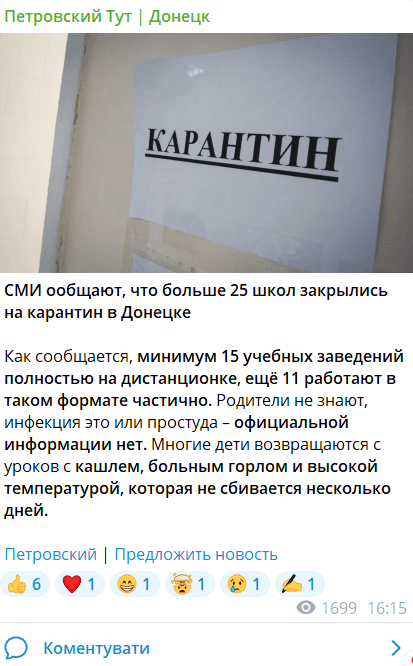 Более 25 школ закрылись на карантин в оккупированном Донецке