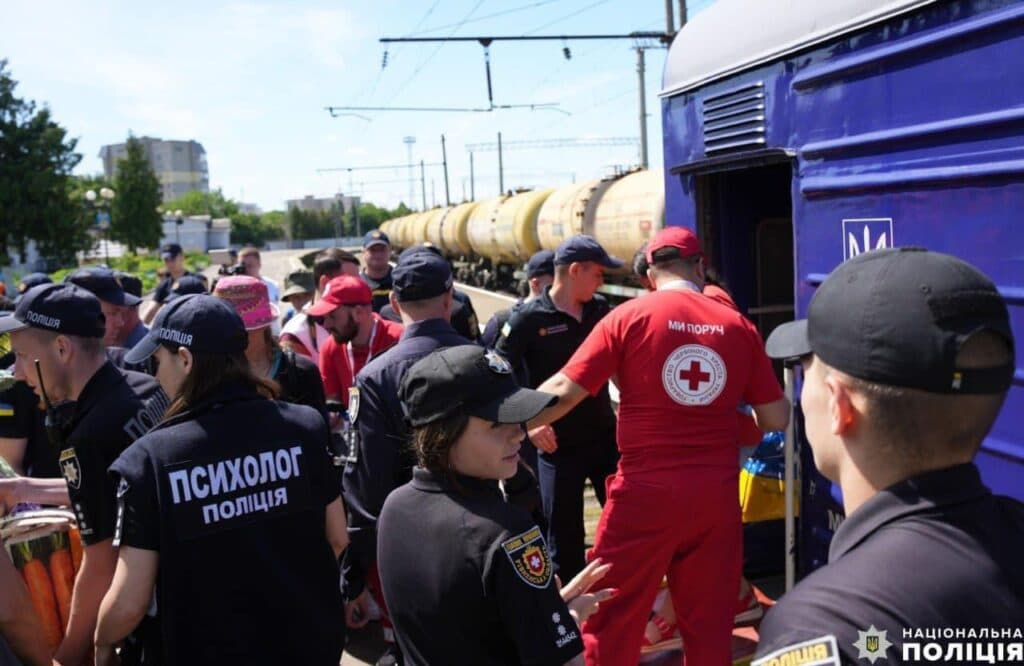 Высадка длится считанные минуты, поэтому алгоритм действий всех служб отработан до автоматизма: медики, полицейские, спасатели, волонтеры быстро помогают людям сойти с поезда, забирают вещи и проводят к месту регистрации.