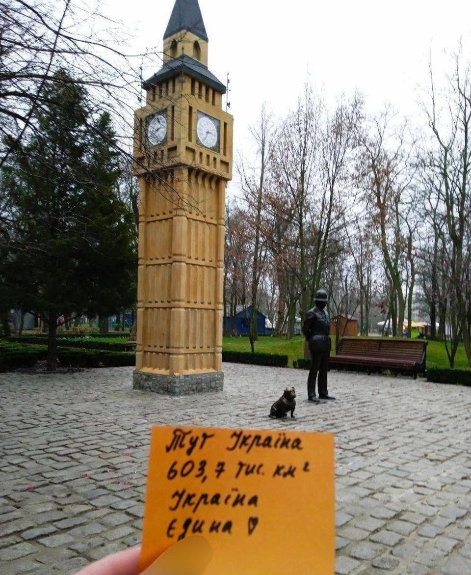 К годовщине всеукраинского референдума о независимости Украины «Желтая Лента» провела акцию на ВОТ. Фото: движения «Желтая Лента» в Телеграм