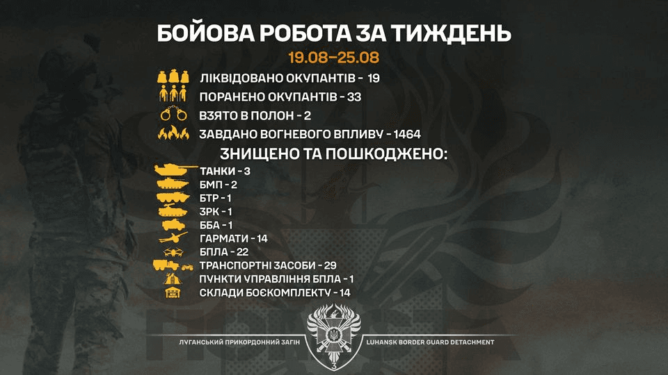 1464 огневых удара нанесли Луганские пограничники по местам размещения оккупантов на Бахмутском, Северском, Купянском направлениях и в районе Серебрянского леса с 19 по 25 августа.