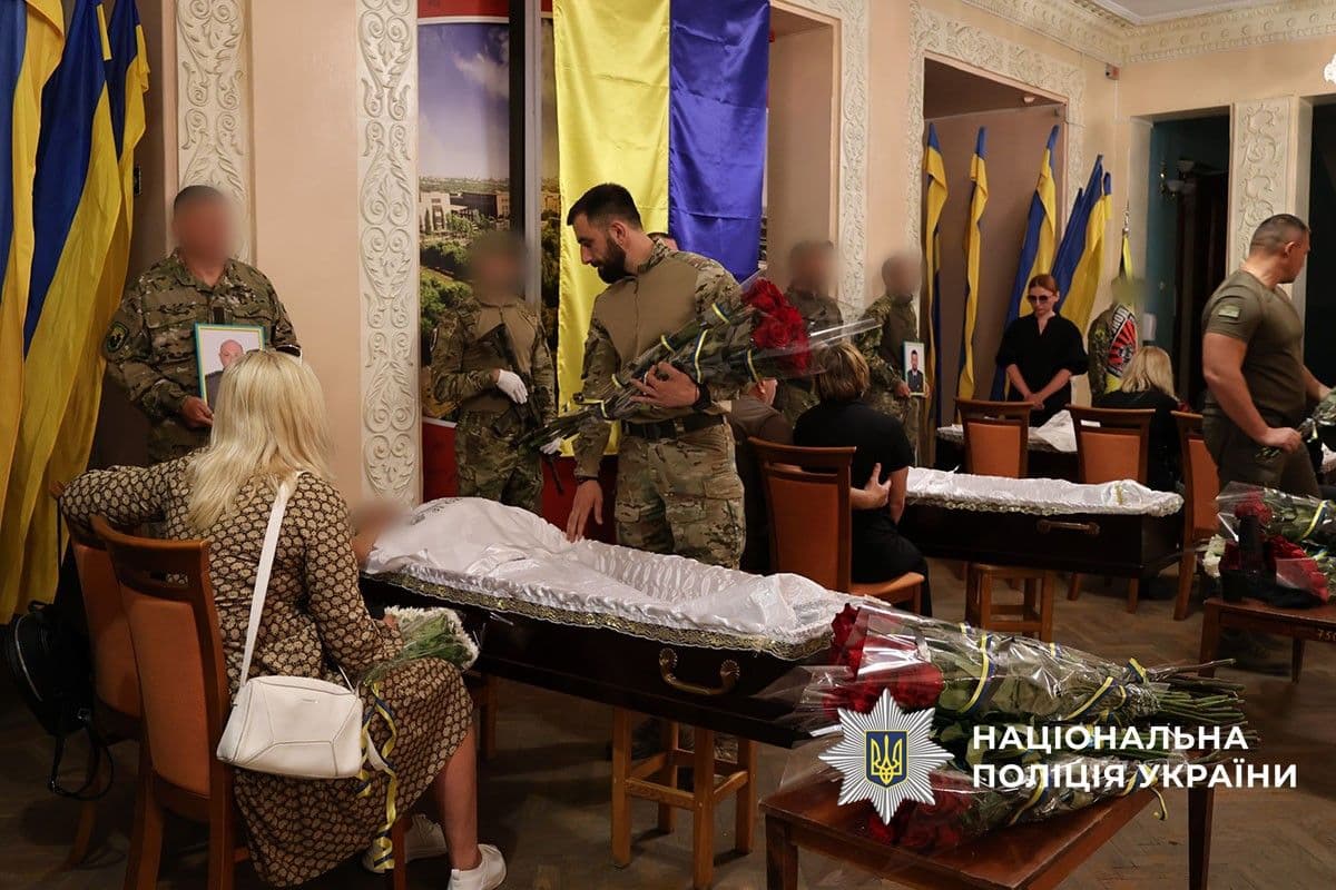 Отдать последний почет защитникам собрались родные, близкие, друзья, побратимы и коллеги вместе с руководством полиции Донецкой области.