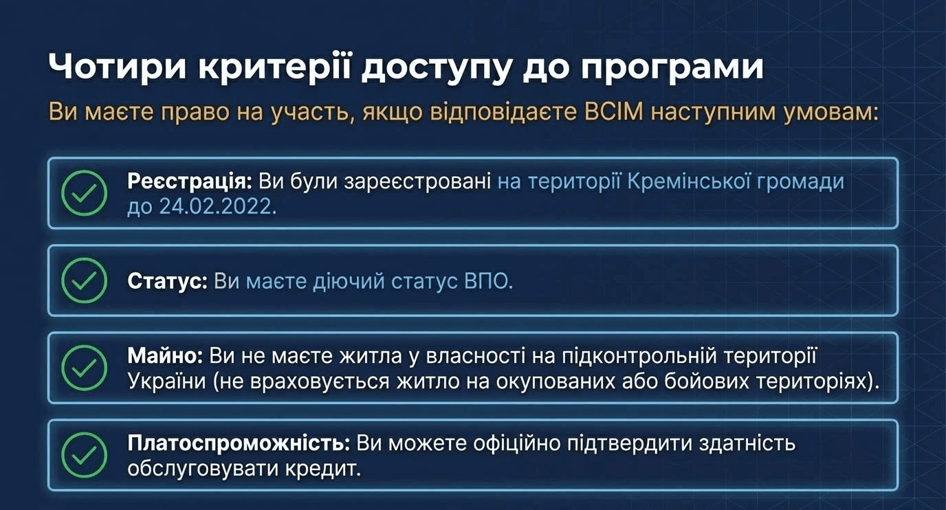 Начался прием заявок на участие в программе льготного жилищного кредитования для внутренне перемещенных лиц Кременской громады