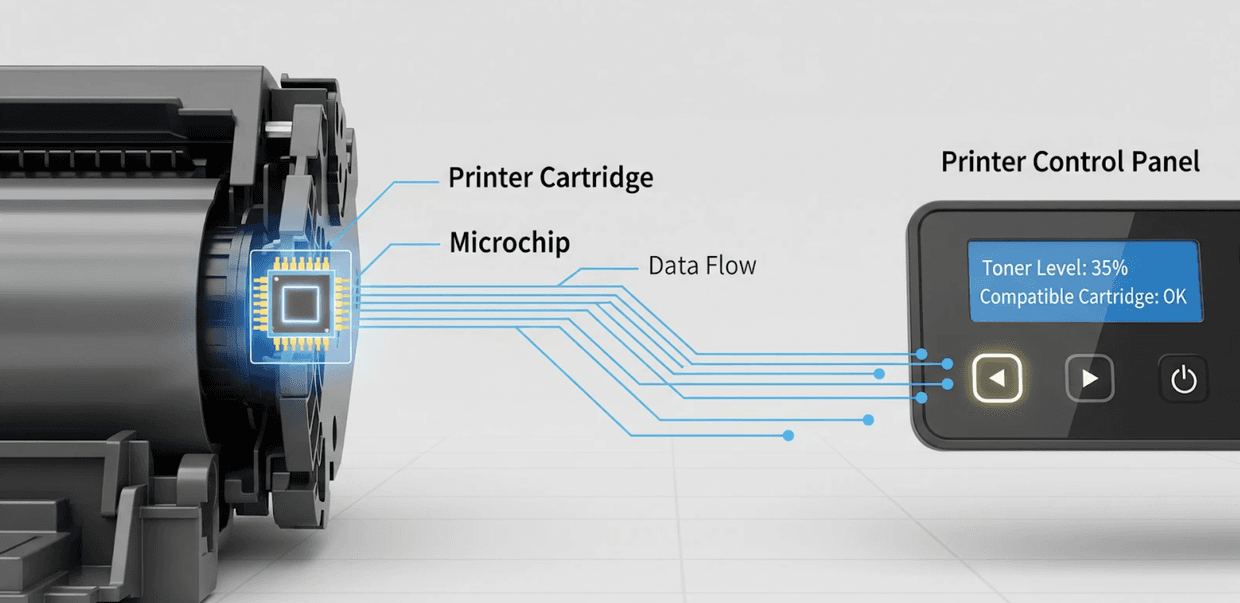 Основная задача чипов – обеспечить совместимость картриджа с МФУ и отслеживать его ресурс. Например, чип может блокировать работу устройства, если уровень тонера достиг нуля, даже если картридж заправлен. Это делает заправку сложнее, так как требуется либо замена чипа, либо его сброс, либо перепрошивка МФУ.