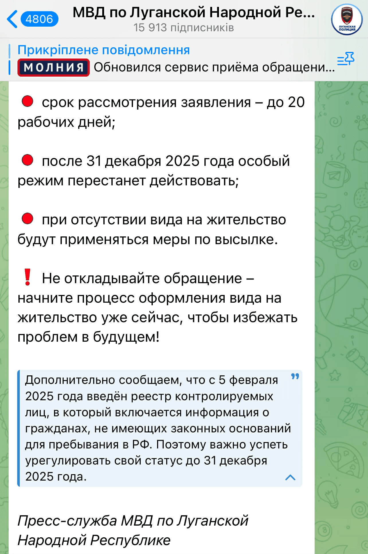 Как сообщили силовики оккупантов, «людям, которые не захотели получать гражданство рф, нужно успеть оформить вид на жительство».
