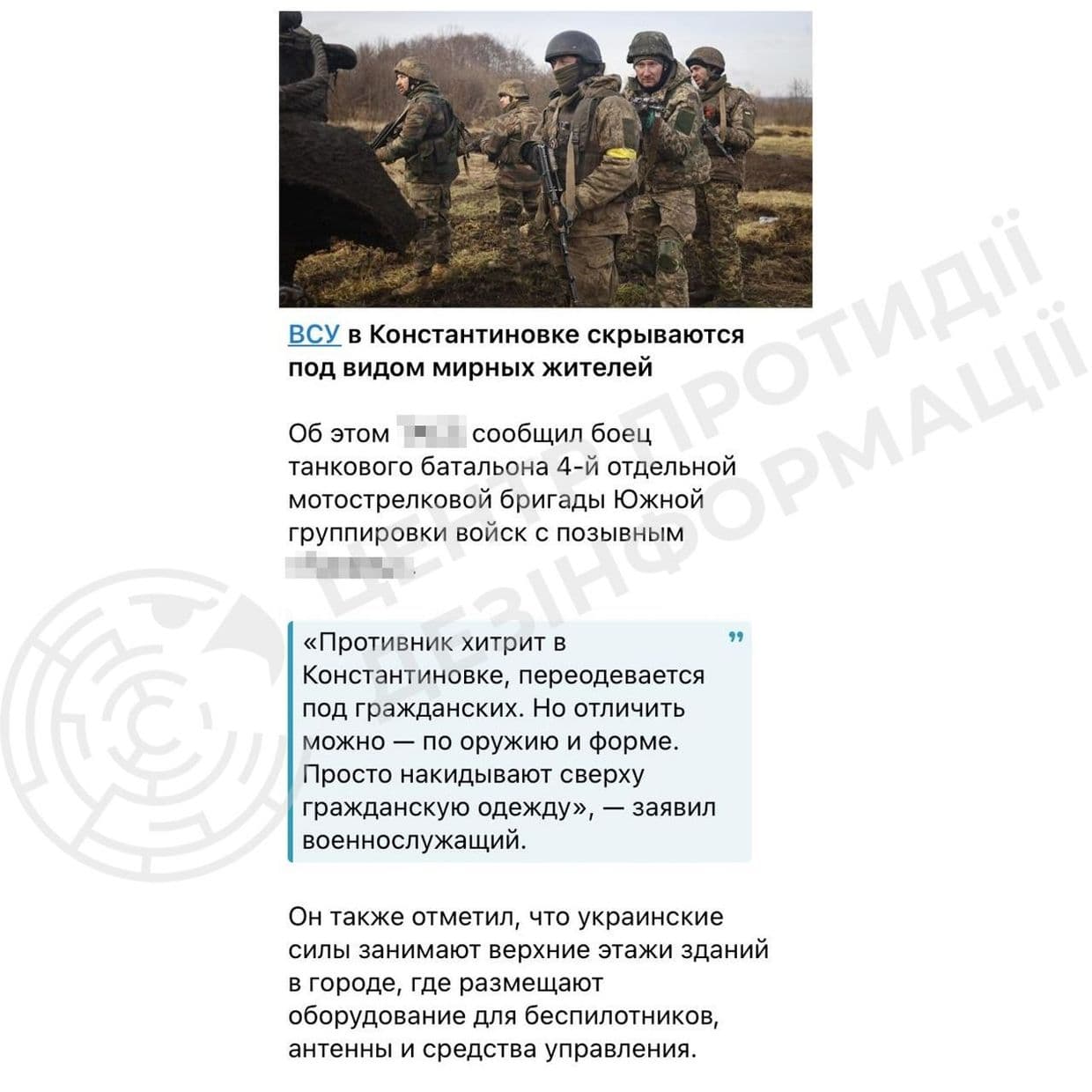 В ЦПД рассказали о российских фейках про действия ВСУ в Константиновке на Донетчине
