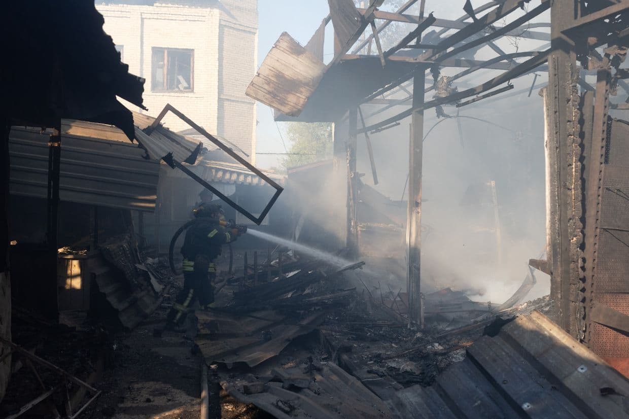 Отмечается также, что 21 августа чрезвычайники ликвидировали возгорание в административном здании и торговых павильонах, возникших в результате вражеских атак.