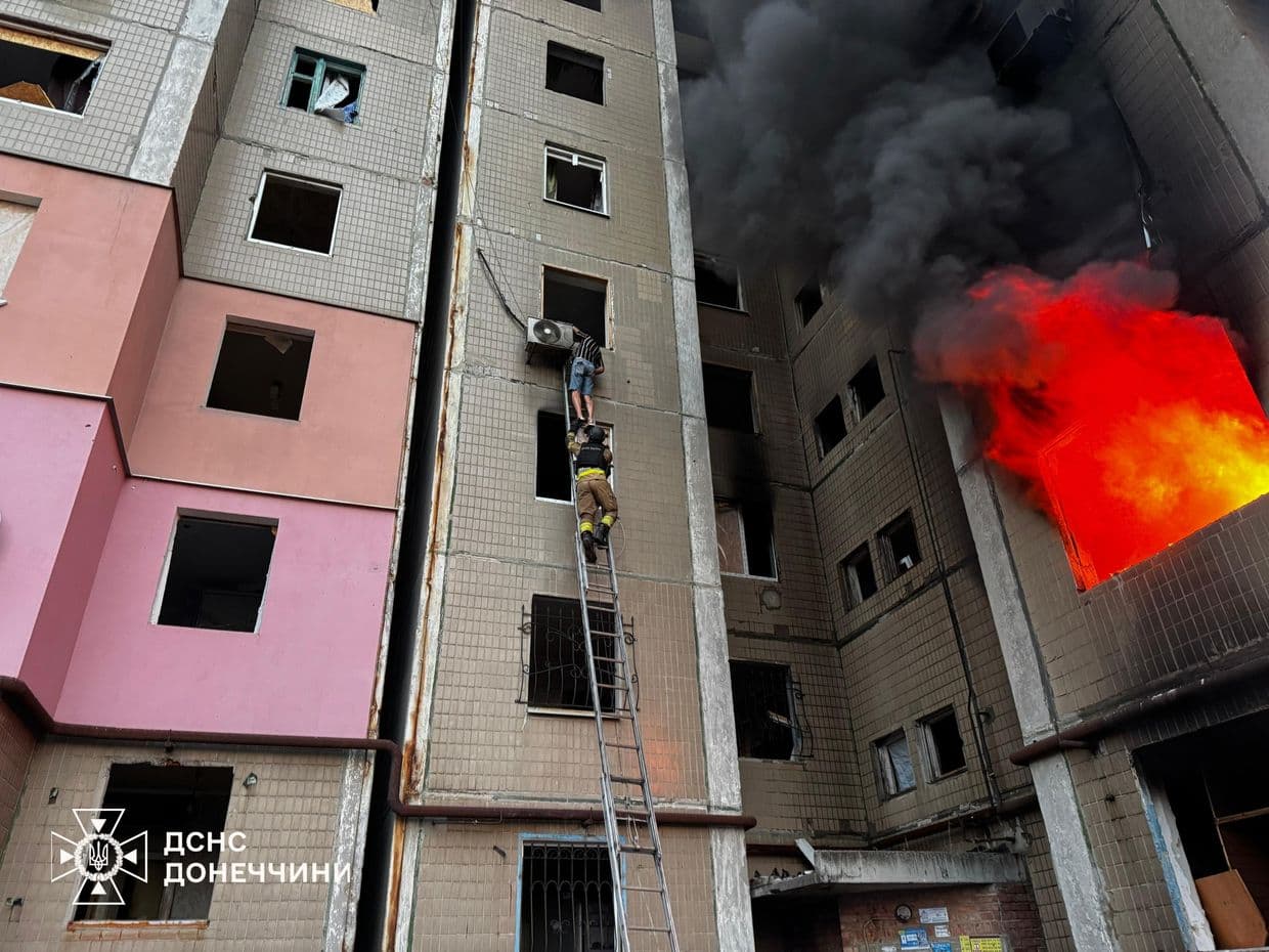 Сегодня на рассвете российская оккупационная армия нанесла авиаудар по Константиновке, в результате чего возникли пожары квартир и балконов в 3 многоэтажных домах.