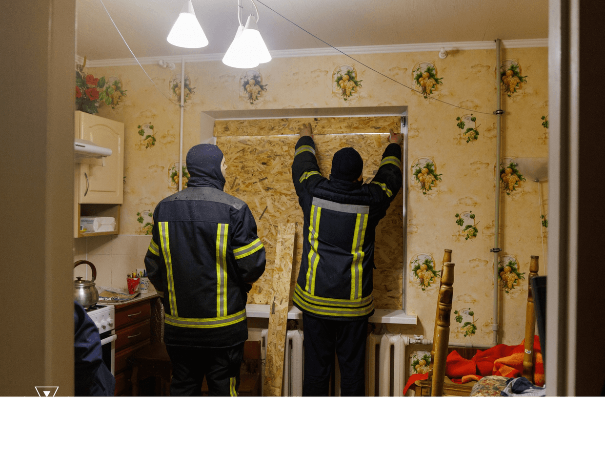 Они оказывают помощь местным жителям и проводят работы по закрытию оконных проемов.