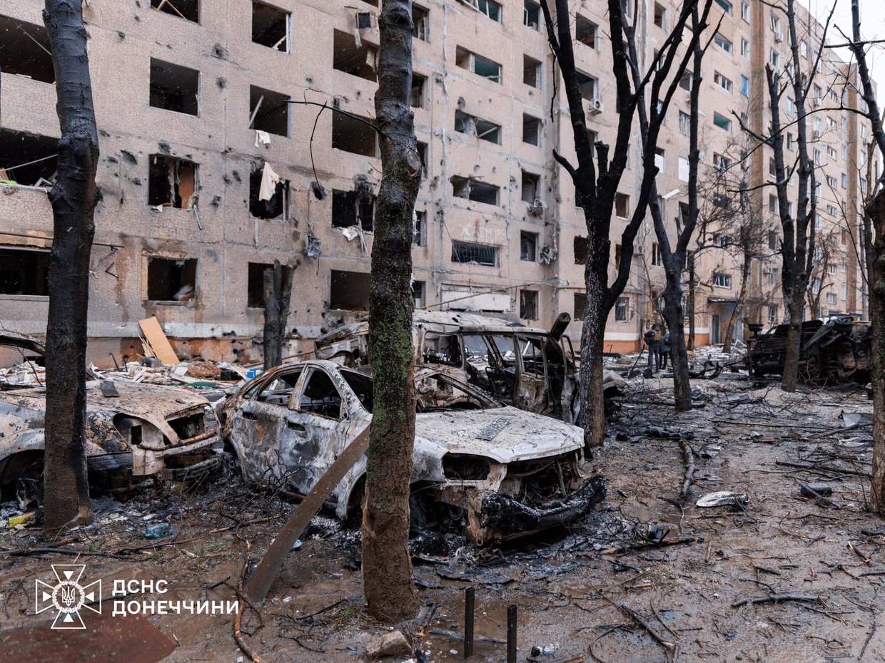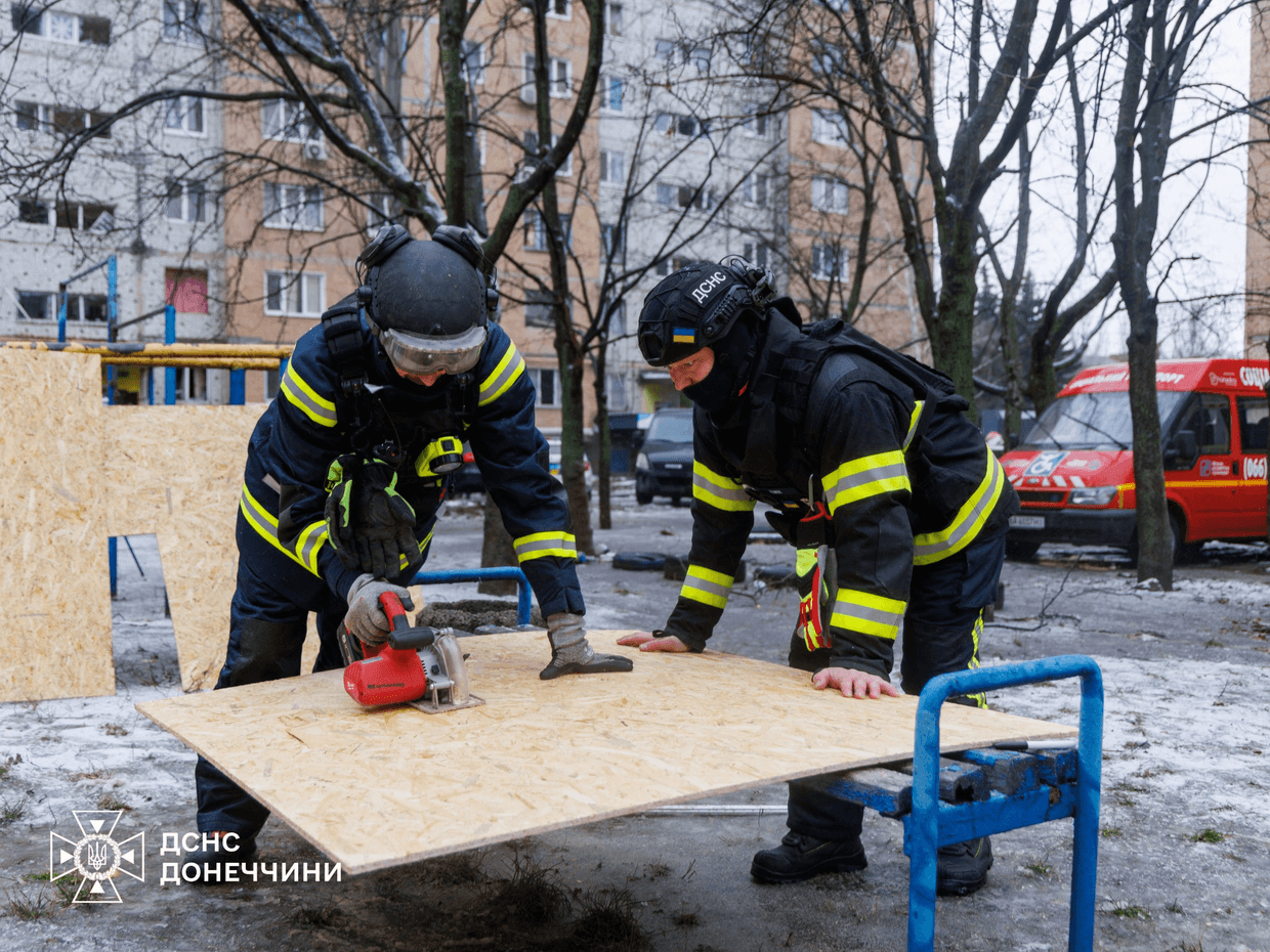 У Краматорську рятувальники надають допомогу людям після ворожого авіаудару. Фото: ГСЧС