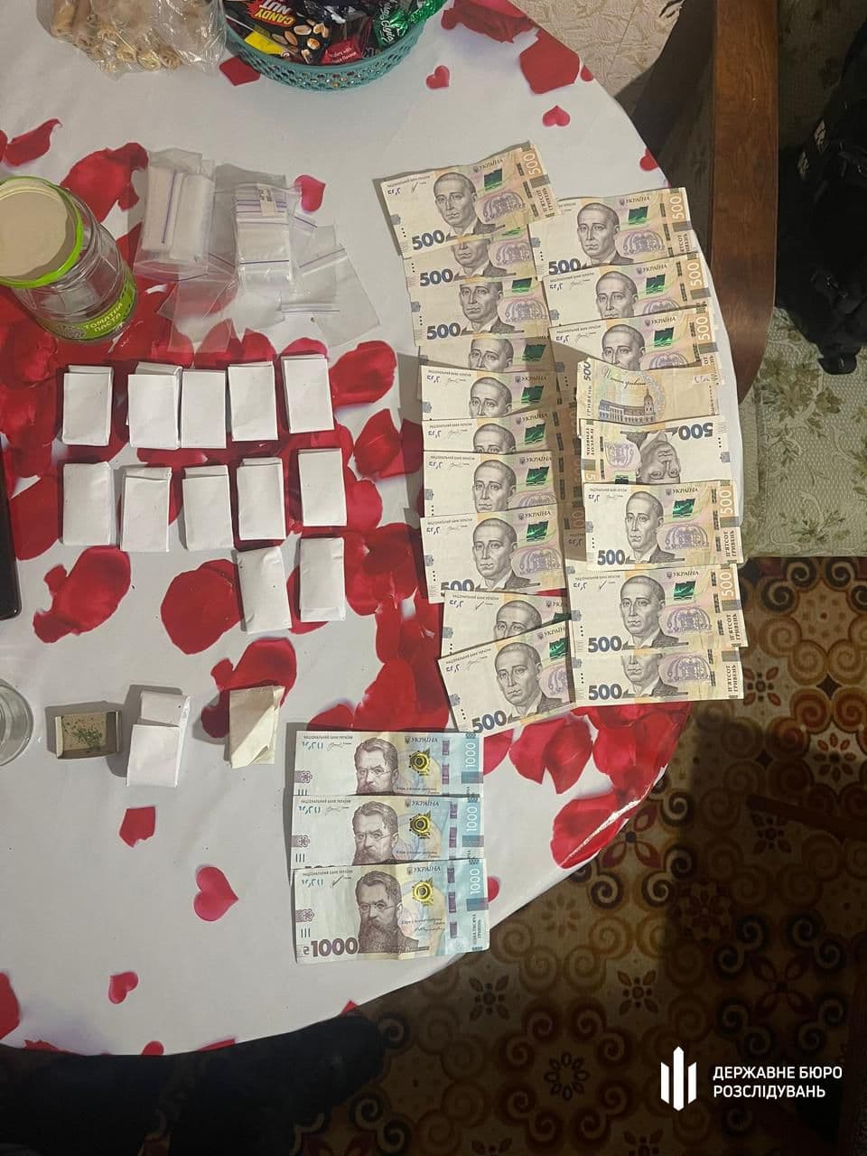 В рамках уголовного производства правоохранители провели 12 обысков — по месту жительства фигуранта, а также в помещениях и транспортных средствах еще пяти человек, с которыми он контактировал. Во время следственных действий изъято более 1,5 млн гривен в разных валютах, 14 свертков с веществом растительного происхождения и мобильные телефоны.